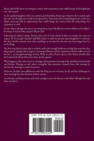 Elayne MacNally knew one thing for certain: Her reputation as the willful Harpy of the Highlands was well earned. As the spoiled daughter of the successful Laird MacNally, Elayne got whatever she wanted, until the man she thought she would wed rejected her. Dejected and reconsidering her lot in life, her father comes up with an opportunity that could change the course of her life and perhaps her reputation as well. Declan MacCollough also knew one thing for certain: He did not want to follow in his father's footsteps as Laird of the reputed "Beast Clan." Following his father's death, Declan had a lot of work ahead of him to reclaim any sense of respect for his people. Families had fled; fathers would not permit their daughters to wed into the clan. Declan wanted, more than anything, to recreate his clan into one deserving of service to the King. The first step Declan must take is to find a wife with enough backbone to help him tame his clan, help it grow, and gain back respect. Learning of Elayne and her reputation, Declan offers to wed the lass - an arranged marriage of sorts. With no other choices open to her, Elayne decides that the Laird of the Beast Clan is her best, if only, option. What happens when she arrives is a strange and passionate meeting of the minds between herself and Declan. Playing on each other's strengths, they maneuver around those who attempt to prevent the marriage as a play for power. However, Declan's past affiliations with the King are not welcome by all, and the challenges to their marriage become the least of their worries. And Declan will take his sword to any man who threatens this woman who saved him from himself. A TOP 50 Best Indie Books 2019! Meet The Lady of the Glen, a steamy arranged marriage Highlander romance.If you like wonderful historical romance, handsome Highland warriors, and strong heroines, then discover The Lady of the Glen today! The novels in this series are each stand-alone stories and can be read individually in any order, if desired. These historical romances are set in Medieval Highlands and do not shy away from steamy scenes, occasional archaic curses, and accurate scenes of Medieval life! (updated covers)