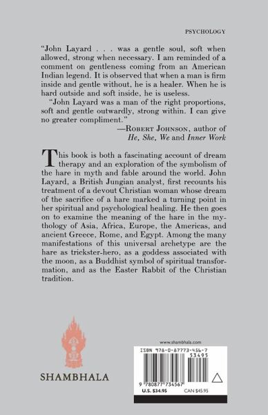 This book is both a fascinating account of dream therapy and an exploration of the symbolism of the hare in myth and fable around the world. John Layard, a British Jungian analyst, first reconts his treatment of a devout Christian woman whose dream of the sacrafice of the hare marked a turning point in her spiritual and psychological healing. He then goes on the examine the meaning of the hare in the mythology of Asia, Africa, Europe, the Americas, and ancient Greece, Rome, and Egypt. Among the many manifestations of this universal archetype are the hare as trickster-hero, as a goddess associated with the moon, as a Buddhist symbol of spiritual transformation, and as the Easter Rabbit of the Christian tradition.