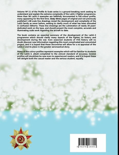 Volume ¿ 11 of the Profile & Scale series is a ground-breaking work seeking to understand and explain the extreme complexity of the LaGG-3 fighter programme. More than 50 LaGG-3 examples are faithfully documented in full-colour profile, many appearing for the first time. Sixty-three pages of original and not previously published 1:48 scale line drawings reveal the development and complexity of the LaGG family as never before, seeking to clarify much of what has been shrouded in confusion hitherto. These line drawings are the culmination of nearly 30 years' dedicated work on the type, and should present the most complete, accurate and illuminating scale work regarding the aircraft to date. The book contains an essential summary of the development of the LaGG-3 programme which should clarify many aspects of the fighter, its history and development during the war. Even seasoned students of VVS history will no doubt discover new information regarding this most complicated and convoluted project, and it is hoped that these discoveries will allow for a re-appraisal of the LaGG-3 and its place in the greater aeronautical story. Many of the colour profiles represent examples which will be familiar to students of the LaGG-3, albeit completed to the utmost standard of accuracy. Several profiles will doubtless be new even to experienced readers, and it is hoped these will delight both the casual reader and the serious student, equally.