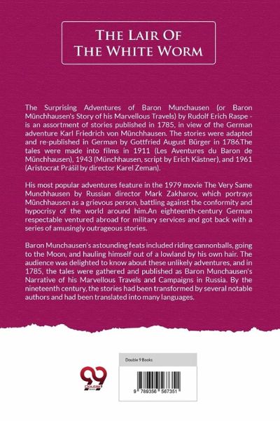 The Lair of the White Worm is a horror novel written by the Irish writer Bram Stoker. It was first published by Rider and Son of London in 1911 - the year prior to Stoker's demise. The story is based on the legend of the Lambton Worm and the book has been issued as The Garden of Evil.The protagonist, Adam Salton is contacted by his uncle, Richard Salton, who needs to make his beneficiary of his estate. He quickly finds himself in the middle of mysterious events, with Sir Nathaniel de Salis as his assistant. The White Worm is a huge snake-like animal dwelling profound under Arabella's home in…mehr