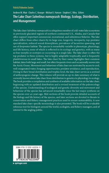 Introduction. The Lake Charr: Biology, Ecology, Distribution, and Management.- Distribution.- Paleoecology.- Ecological Diversity.- Genetic Diversity.- Habitat.- Movement Ecology and Behavior.- Life History and Population Dynamics.- Trophic Ecology.- Reproduction.- Contaminants and Ecotoxicology.- A General, Life History Based Model for Sustainable Exploitation of Lake Charr across their Range.- Terminology Issues in Lake Charr Early Development.