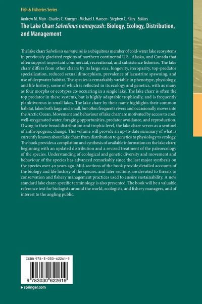 Introduction. The Lake Charr: Biology, Ecology, Distribution, and Management.- Distribution.- Paleoecology.- Ecological Diversity.- Genetic Diversity.- Habitat.- Movement Ecology and Behavior.- Life History and Population Dynamics.- Trophic Ecology.- Reproduction.- Contaminants and Ecotoxicology.- A General, Life History Based Model for Sustainable Exploitation of Lake Charr across their Range.- Terminology Issues in Lake Charr Early Development.