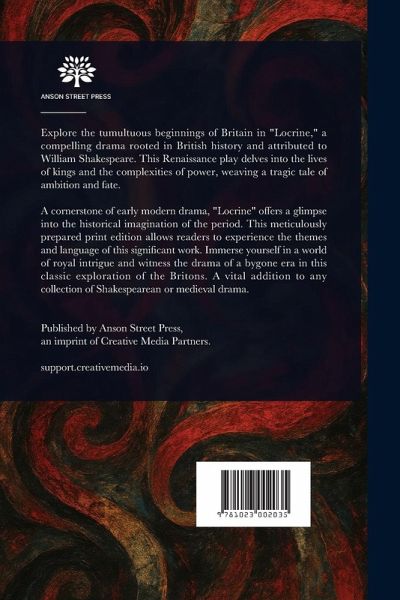 Explore the tumultuous beginnings of Britain in "Locrine," a compelling drama rooted in British history and attributed to William Shakespeare. This Renaissance play delves into the lives of kings and the complexities of power, weaving a tragic tale of ambition and fate. A cornerstone of early modern drama, "Locrine" offers a glimpse into the historical imagination of the period. This meticulously prepared print edition allows readers to experience the themes and language of this significant work. Immerse yourself in a world of royal intrigue and witness the drama of a bygone era in this classic exploration of the Britons. A vital addition to any collection of Shakespearean or medieval drama. This work has been selected by scholars as being culturally important, and is part of the knowledge base of civilization as we know it. This work is in the public domain in the United States of America, and possibly other nations. Within the United States, you may freely copy and distribute this work, as no entity (individual or corporate) has a copyright on the body of the work. Scholars believe, and we concur, that this work is important enough to be preserved, reproduced, and made generally available to the public. We appreciate your support of the preservation process, and thank you for being an important part of keeping this knowledge alive and relevant.