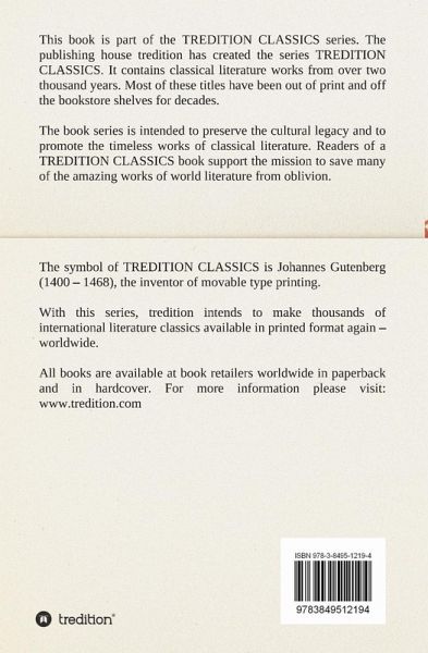 This book is part of the TREDITION CLASSICS. It contains classical literature works from over two thousand years. Most of these titles have been out of print and off the bookstore shelves for decades. The book series is intended to preserve the cultural legacy and to promote the timeless works of classical literature. Readers of a TREDITION CLASSICS book support the mission to save many of the amazing works of world literature from oblivion. With this series, tredition intends to make thousands of international literature classics available in printed format again worldwide.