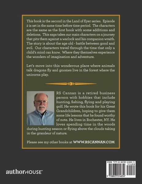 This book is the second in the Land of Eyer series. Episode 2 is set in the same time before time period. The characters are the same as the first book with some additions and deletions. This saga takes our main characters on a journey that pits them against a warlock and his companion wraith. The story is about the age old - battle between good and evil. Our characters travel through the time that only a child's mind can know. Where they themselves experience the wonders of imagination and adventure. Let's move into this wonderous place where animals talk dragons fly and gnomes live in the forest where the unicorns play.