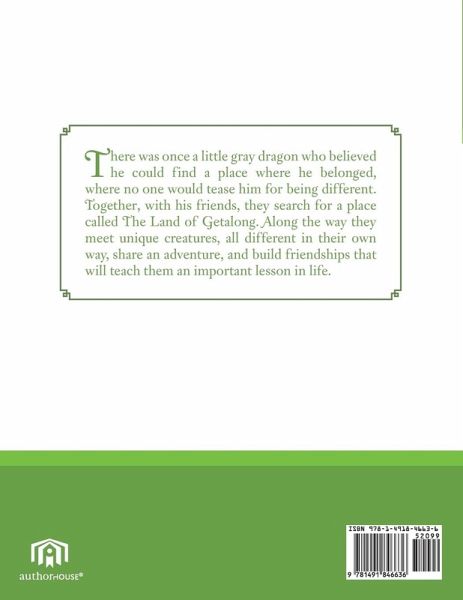 There was once a little gray dragon who believed he could find a place where he belonged, where no one would tease him for being different. Together, with his friends, they search for a place called The Land of Getalong. Along the way they meet unique creatures, all different in their own way, share an adventure, and build friendships that will teach them an important lesson in life.