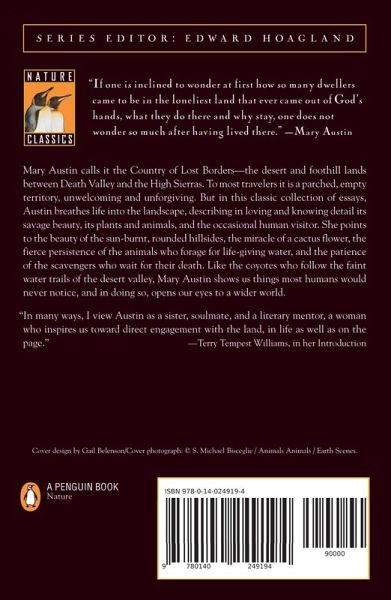 "Between the high Sierras south from Yosemite-east and south over a very great assemblage of broken ranges beyond Death Valley, and on illimitably into the Mojave Desert" is the territory that Mary Austin calls the Land of Little Rain. In this classic collection of meditations on the wonders of this region, Austin generously shares "such news of the land, of its trails and what is astir in them, as one lover of it can give to another." Her vivid writings capture the landscape-from burnt hills to sun-baked mesas-as well as the rich variety of plant and animal life, and the few human beings who inhabit the land, including cattlemen, miners, and Paiute Indians. For more than seventy years, Penguin has been the leading publisher of classic literature in the English-speaking world. With more than 1,700 titles, Penguin Classics represents a global bookshelf of the best works throughout history and across genres and disciplines. Readers trust the series to provide authoritative texts enhanced by introductions and notes by distinguished scholars and contemporary authors, as well as up-to-date translations by award-winning translators.
