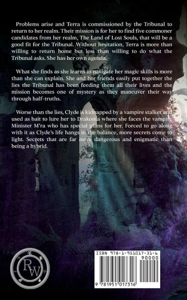 Problems arise and Terra is commissioned by the Tribunal to return to her realm. Their mission is for her to find five commoner candidates from her realm The Land of lost Souls that will be a good fit for the Tribunal. Without hesitation Terra is more than willing to return home and less than willing to do what the Tribunal asks. She has her own agenda. What she finds as she learns to navigate her magic skills is more than she can explain. She and her friends easily put together the lies the Tribunal has been feeding them all their lives and the mission becomes one of mystery as they maneuver their way through half-truths. Worse than the lies Clyde is kidnapped by a vampire stalker and used as bait to lure her to Drakonia where she faces the vampire Minister M'ra who has special plans for her. Forced to go along with it as Clyde's life hangs in the balance more secrets come to light. Ones that are far more dangerous and enigmatic than being a hybrid.