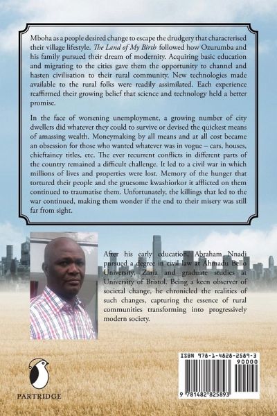 Mboha as a people desired change to escape the drudgery that characterised their village lifestyle. The Land of My Birth followed how Ozurumba and his family pursued their dream of modernity. Acquiring basic education and migrating to the cities gave them the opportunity to channel and hasten civilisation to their rural community. New technologies made available to the rural folks were readily assimilated. Each experience reaffirmed their growing belief that science and technology held a better promise. In the face of worsening unemployment, a growing number of city dwellers did whatever they could to survive or devised the quickest means of amassing wealth. Moneymaking by all means and at all cost became an obsession for those who wanted whatever was in vogue - cars, houses, chieftaincy titles, etc. The ever recurrent conflicts in different parts of the country remained a difficult challenge. It led to a civil war in which millions of lives and properties were lost. Memory of the hunger that tortured their people and the gruesome kwashiorkor it afflicted on them continued to traumatise them. Unfortunately, the killings that led to the war continued, making them wonder if the end to their misery was still far from sight.