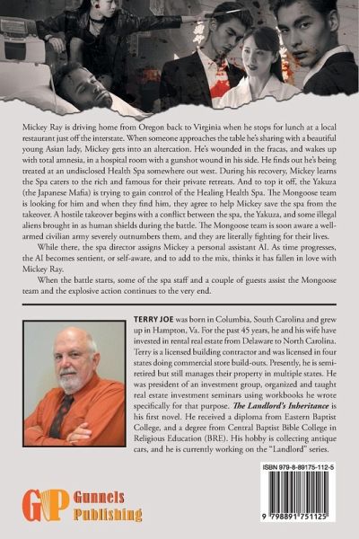 Mickey Ray is driving home from Oregon back to Virginia when he stops for lunch at a local restaurant just off the interstate. When someone approaches the table he's sharing with a beautiful young Asian lady, Mickey gets into an altercation. He's wounded in the fracas, and wakes up with total amnesia, in a hospital room with a gunshot wound in his side. He finds out he's being treated at an undisclosed Health Spa somewhere out west. During his recovery, Mickey learns the Spa caters to the rich and famous for their private retreats. And to top it off, the Yakuza (the Japanese Mafia) is trying to gain control of the Healing Health Spa. The Mongoose team is looking for him and when they find him, they agree to help Mickey save the spa from the takeover. A hostile takeover begins with a conflict between the spa, the Yakuza, and some illegal aliens brought in as human shields during the battle. The Mongoose team is soon aware a well-armed civilian army severely outnumbers them, and they are literally fighting for their lives. While there, the spa director assigns Mickey a personal assistant AI. As time progresses, the AI becomes sentient, or self-aware, and to add to the mix, thinks it has fallen in love with Mickey Ray. When the battle starts, some of the spa staff and a couple of guests assist the Mongoose team and the explosive action continues to the very end.