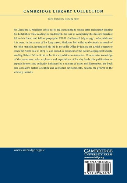Sir Clements R. Markham (1830-1916) had succumbed to smoke after accidentally igniting his bedclothes while reading by candlelight; the task of completing this history therefore fell to his friend and fellow geographer F. H. H. Guillemard (1852-1933), who published it in 1921. In the course of his long career, Markham had sailed to the Arctic in search of Sir John Franklin, jeopardised his job in the India Office by joining the British attempt to reach the North Pole in 1875-6, and served as president of the Royal Geographical Society, sending Robert Falcon Scott on his first expedition to Antarctica. His extensive knowledge of the prominent polar explorers and expeditions of his day lends this publication an especial interest and authority. Enhanced by a number of maps and illustrations, the book also considers certain scientific and economic developments, notably the growth of the whaling industry.