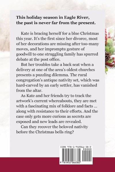 This holiday season in Eagle River, the past is never far from the present. Kate is bracing herself for a blue Christmas this year. It's the first since her divorce, most of her decorations are missing after too-many moves, and her impromptu gesture of goodwill to one struggling family has caused trouble at the post office. But her troubles take a back seat after a mail stop at one of the area's oldest churches presents a puzzling dilemma. The rural congregation's antique nativity set, which was hard-carved by an early settler, has vanished from the altar. When Kate and her friends try to track the artwork's current whereabouts, they are met with a fascinating mix of folklore and facts ... along with resistance to their efforts. The case only gets more curious as secrets are exposed and new leads are revealed. Can they recover the beloved nativity before the Christmas bells ring?