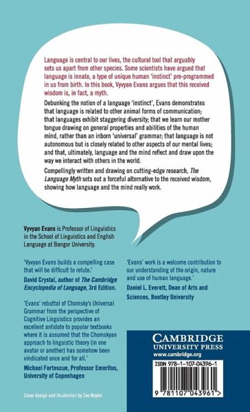 Language is central to our lives, the cultural tool that arguably sets us apart from other species. Some scientists have argued that language is innate, a type of unique human 'instinct' pre-programmed in us from birth. In this book, Vyvyan Evans argues that this received wisdom is, in fact, a myth. Debunking the notion of a language 'instinct', Evans demonstrates that language is related to other animal forms of communication; that languages exhibit staggering diversity; that we learn our mother tongue drawing on general properties and abilities of the human mind, rather than an inborn 'universal' grammar; that language is not autonomous but is closely related to other aspects of our mental lives; and that, ultimately, language and the mind reflect and draw upon the way we interact with others in the world. Compellingly written and drawing on cutting-edge research, The Language Myth sets out a forceful alternative to the received wisdom, showing how language and the mind really work.