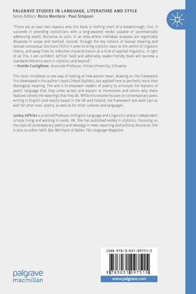 This book introduces a new way of looking at how poems mean, drawing on the framework first developed in the author's book Critical Stylistics, but applied here to aesthetic more than ideological meaning. The aim is to empower readers of poetry to articulate the features of poetic language that they come across and explain to themselves and others why these features convey the meanings that they do. While this volume focuses on contemporary poets writing in English and mostly based in the UK and Ireland, the framework will work just as well for other eras' poetry, as well as for other cultures and languages.