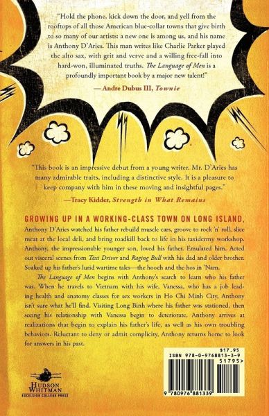 Growing up in a working class town on Long Island, Anthony D'Aries watched his father rebuild muscle cars, groove to rock 'n' roll, slice meat at the local deli, and bring roadkill back to life in his taxidermy workshop. Anthony, the impressionable younger son, loved his father. Emulated him. Acted out visceral scenes from Taxi Driver and Raging Bull with his dad and older brother. Soaked up his father's lurid wartime tales-the hooch and the hos in 'Nam. The Language of Men begins with Anthony's search to learn who his father was. When he travels to Vietnam with his wife, Vanessa, who has a job leading health and anatomy classes for sex workers in Ho Chi Minh City, Anthony isn't sure what he will find. Visiting Long Binh where his father was stationed, then seeing his relationship with Vanessa begin to deteriorate, Anthony arrives at realizations that begin to explain his father's life, as well as his own troubling behaviors. Reluctant to deny or admit complicity, Anthony returns home to look for answers in his past. What does it cost to speak the language of men? In prose that sings-sometimes defiantly, sometimes sadly, but always eloquently-Anthony D'Aries transports us to the crossroads of gender and history, then leads us through the unsettling terrain that creates fathers, sons, brothers, and husbands 2012 ForeWord Book of the Year, 1st Place (Autobiography & Memoir) Silver IPPY (Memoir)