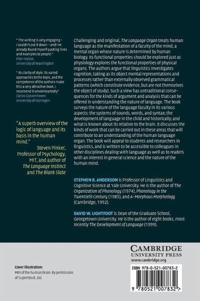 Challenging and original, The Language Organ treats human language as the manifestation of a faculty of the mind, a mental organ whose nature is determined by human biology and whose functional properties should be explored just as physiology explores the functional properties of physical organs.
