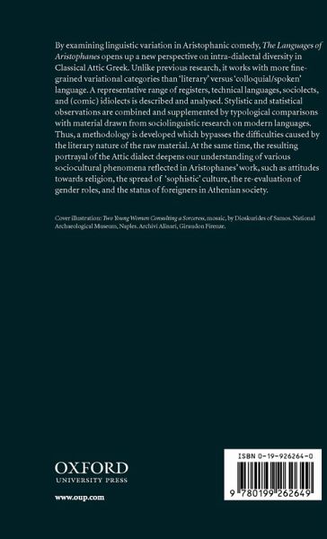 By examining linguistic variation in Aristophanic comedy, Andreas Willi opens up a new perspective on intra-dialectal diversity in Classical Attic Greek. A representative range of registers, technical languages, sociolects, and (comic) idiolects is described and analyzed. Stylistic and statistical observations are combined and supplemented by typological comparisons with material drawn from sociolinguistic research on modern languages. The resulting portrayal of the Attic dialect deepens our understanding of various socio-cultural phenomena reflected in Aristophanes' work.