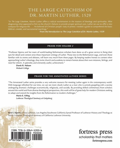 With great detail, Kirsi I. Stjerna introduces and annotates Luthers Large Catechism, in which the reformer set out to offer a new compass for religious life. He believed all Christian peoplelaity and clergyneeded a guide to comprehend the basic biblical, creedal, and sacramental teachings. This volume is excerpted from The Annotated Luther series, Volume 2. Each volume in the series contains extensive annotations, illustrations, and notes to help shed light on Luthers context and to interpret his writings for today.