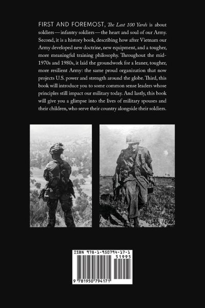 First and foremost, The Last 100 Yards is about soldiers—infantry soldiers—the heart and soul of our Army. Second, it is a history book, describing how after Vietnam our Army developed new doctrine, new equipment, and a tougher, more meaningful training philosophy. Throughout the mid-1970s and 1980s, it laid the groundwork for a leaner, tougher, more resilient Army: the same proud organization that now projects U.S. power and strength around the globe. Third, this book will introduce you to some common sense leaders whose principles still impact our military today. And lastly, this book will give you a glimpse into the lives of military spouses and their children, who serve their country alongside their soldiers.