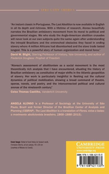 Angela Alonso is a Professor of Sociology at the University of São Paulo, Brazil and former Director of the Brazilian Center of Analysis and Planning (CEBRAP). The Last Abolition is a translation of Flores, Votos e Balas; o movimento abolicionista brasileiro, 1868-1888 (2015).
