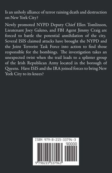 Is an unholy alliance of terror raining death and destruction on New York City? Newly promoted NYPD Deputy Chief Ellen Tomlinson, Lieutenant Joey Galeno, and FBI Agent Jimmy Craig are forced to battle the potential annihilation of the city. Several ISIS claimed attacks have brought the NYPD and the Joint Terrorist Task Force into action to find those responsible for the bombings. The investigation takes an unexpected twist when the trail leads to a splinter group of the Irish Republican Army located in the borough of Queens. Have ISIS and the IRA joined forces to bring New York City to its knees?