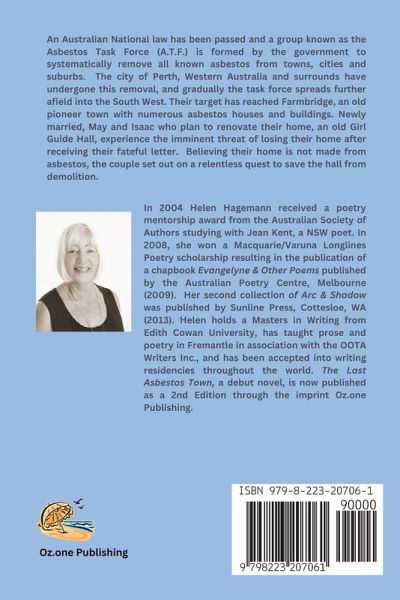 Western Australia is the focus of this gripping novel. The story follows the lives of May & Isaac affected by a full asbestos eradication process carried out by the Government's Asbestos Task Force. The ATF works tirelessly to eradicate all traces of the deadly mineral from towns, cities and suburbs and has reached Farmbridge an old pioneer town in the South West. Newly married May & Isaac, who plan to renovate their home an old Girl Guide Hall, experience the imminent threat of losing their home after receiving their fateful letter. Believing their home is not made from asbestos, the couple set out on a relentless quest to save the hall from demolition.
