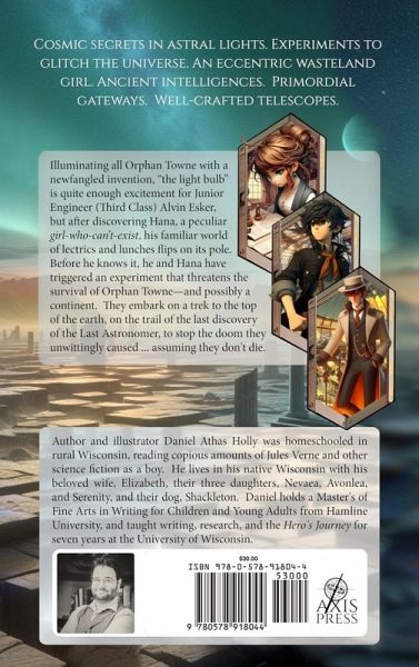 Illuminating all Orphan Towne with a newfangled invention, "the light bulb" is enough excitement for Junior Engineer (Third Class) Alvin Esker, but after discovering Hana, a peculiar girl-who-can't-exist, his familiar world of lectrics and lunches flips on its pole. Before he knows it, he and Hana have triggered an experiment that threatens the survival of Orphan Towne-and possibly a continent. They embark on a trek to the top of the earth, on the trail of the last discovery of the Last Astronomer, to stop the doom they unwittingly caused ... assuming they don't die.