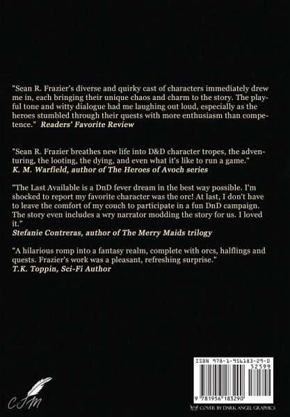 An orc warrior, a halfling rogue, a priest, a pyromaniac wizard, a female barbarian, and a bard walk into a tavern ... it's a small miracle they didn't burn it down. They were hired to save the world but might accidentally end it. Follow the bumbling adventures of these unlikely heroes as they attempt to quest their way into defeating Gobthorak the Eater of Worlds. Are they the heroes for the job? No, definitely not. Can they get the job done? Unlikely. Are they the world's last hope? Unfortunately for everyone, yes. When the final battle looms will the Last Available heroes stand and fight or heed the call of a tankard of ale? Will they even make it out of the tavern and show up for the final battle? Nobody's certain but whatever happens, it won't be pretty.