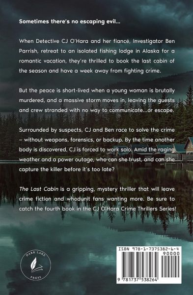 Sometimes there's no escaping evil... When Detective CJ O'Hara and her fiancé, Investigator Ben Parrish, retreat to an isolated fishing lodge in Alaska for a romantic vacation, they're thrilled to book the last cabin of the season and have a week away from fighting crime. But the peace is short-lived when a young woman is brutally murdered, and a massive storm moves in, leaving the guests and crew stranded with no way to communicate...or escape. Surrounded by suspects, CJ and Ben race to solve the crime - without weapons, forensics, or backup. By the time another body is discovered, CJ is forced to work solo. Amid the raging weather and a power outage, who can she trust, and can she capture the killer before it's too late? The Last Cabin is a gripping, mystery thriller that will leave crime fiction and whodunit fans wanting more. Be sure to catch the fourth book in the CJ O'Hara Crime Thrillers Series!