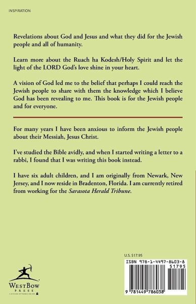Revelations about God and Jesus and what they did for the Jewish people and all of humanity. Learn more about the Ruach ha Kodesh/Holy Spirit and let the light of the LORD God's love shine in your heart. A vision of God led me to the belief that perhaps I could reach the Jewish people to share with them the knowledge which I believe God has been revealing to me. This book is for the Jewish people and for everyone.