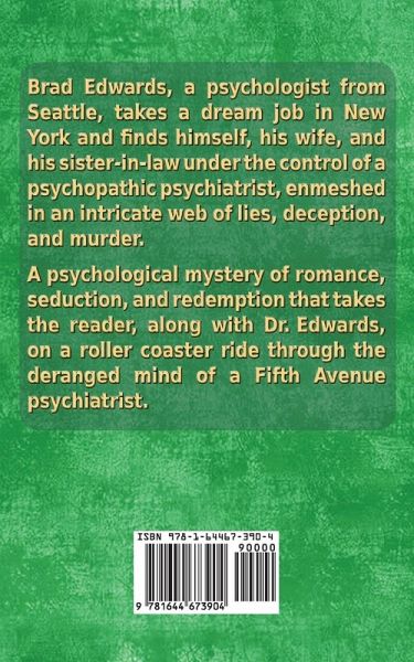 Brad Edwards, a psychologist from Seattle, takes a dream job in New York and finds himself, his wife, and his sister-in-law under the control of a psychopathic psychiatrist, enmeshed in an intricate web of lies, deception, and murder. A psychological mystery of romance, seduction, and redemption that takes the reader, along with Dr. Edwards, on a roller coaster ride through the deranged mind of a Fifth Avenue psychiatrist.