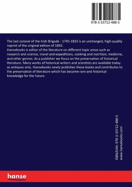 The last colonel of the Irish Brigade - 1745-1833 is an unchanged, high-quality reprint of the original edition of 1892.