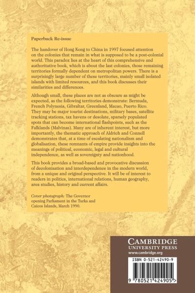 This comprehensive and authoritative book is about the last colonies, those remaining territories formally dependent on metropolitan powers. It discusses the surprisingly large number of these territories, mainly small isolated islands with limited resources. Yet these places are not as obscure as might be expected. They may be major tourist destinations, military bases, satellite tracking stations, tax havens or desolate, underpopulated spots that can become international flashpoints, such as the Falklands. The authors find that at a time of escalating nationalism and globalization, these remnants of empire provide insights into the meanings of political, economic, legal and cultural independence, as well as sovereignty and nationhood. This book provides a broad-based and provocative discussion of colonialism and interdependence in the modern world, from a unique perspective.