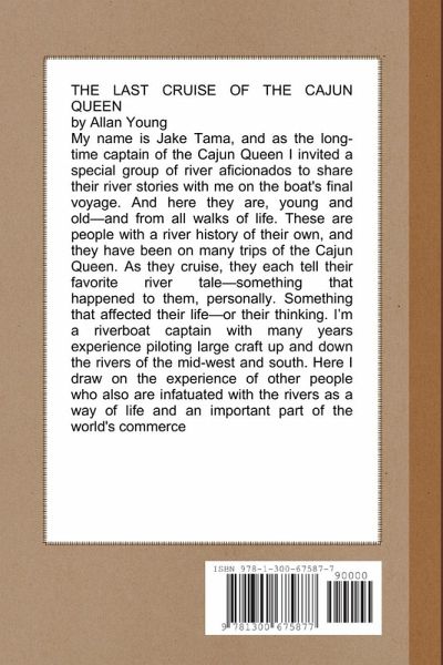 My name is Jake Tama, and as the long-time captain of the Cajun Queen I invited a special group of river aficionados to share their river stories with me on the boat's final voyage. And here they are, young and old-and from all walks of life. These are people with a river history of their own, and they have been on many trips of the Cajun Queen. As they cruise, they each tell their favorite river tale-something that happened to them, personally. Something that affected their life-or their thinking. I'm a riverboat captain with many years experience piloting large craft up and down the rivers of the mid-west and south. Here I draw on the experience of other people who also are infatuated with the rivers as a way of life and an important part of the world's commerce