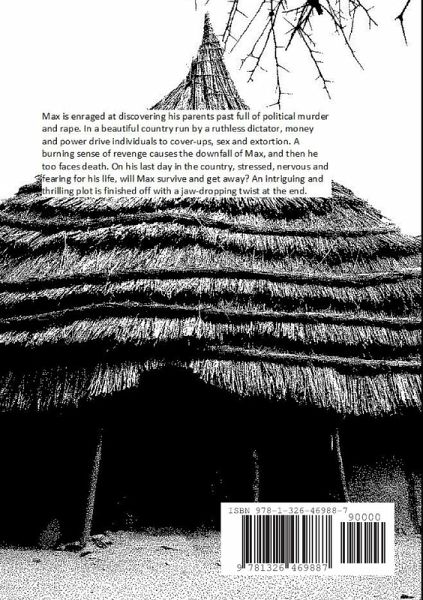 Max is enraged at discovering his parents past full of political murder and rape. In a beautiful country run by a ruthless dictator, money and power drive individuals to cover-ups, sex and extortion. A burning sense of revenge causes the downfall of Max, and then he too faces death. On his last day in the country, stressed, nervous and fearing for his life, will Max survive and get away? An intriguing and thrilling plot is finished off with a jaw-dropping twist at the end.