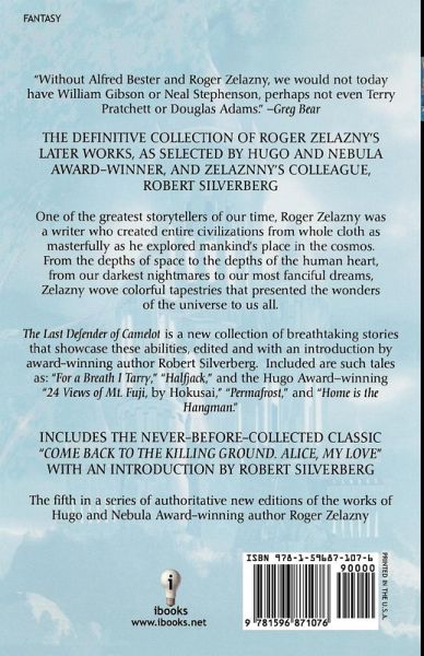 The Last Defender of Camelot is a collection of breathtaking stories that showcase the incredible abilities of several authors. Edited and with an introduction by award-winning author Robert Silverberg, it includes such tales as For a Breath I Tarry, and Halfjack. It also features the Hugo Award-winning 24 Views of Mt. Fuji, by Hokusai, Permafrost, and Home is the Hangman