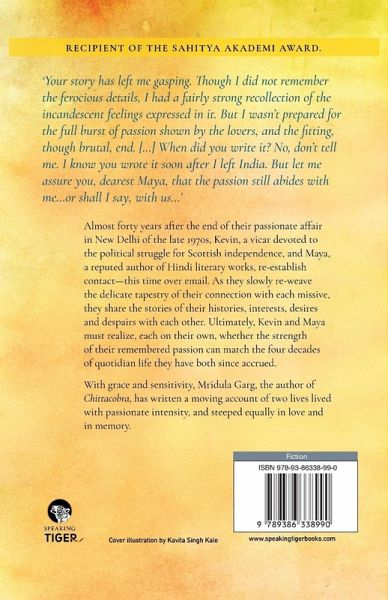 ‘Your story has left me gasping. Though I did not remember the ferocious details, I had a fairly strong recollection of the incandescent feelings expressed in it. But I wasn’t prepared for the full burst of passion shown by the lovers, and the fitting, though brutal, end. […] When did you write it? No, don’t tell me. I know you wrote it soon after I left India. But let me assure you, dearest Maya, that the passion still abides with me… or shall I say, with us…’ Almost forty years after the end of their passionate affair in New Delhi of the late 1970s, Kevin, a vicar devoted to the political…mehr