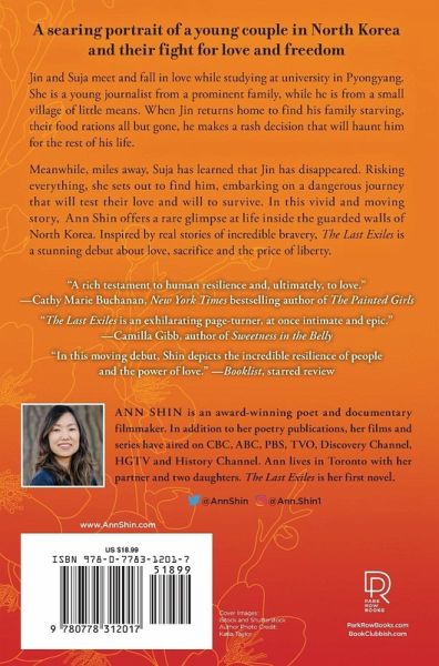 WINNER OF THE TRILLIUM AWARD An unforgettable saga inspired by true events, The Last Exiles is a searing portrait of a young couple in North Korea and their fight for love and freedom Jin and Suja meet and fall in love while studying at university in Pyongyang. She is a young journalist from a prominent family, while he is from a small village of little means. Outside the school, North Korea has fallen under great political upheaval, plunged into chaos and famine. When Jin returns home to find his family starving, their food rations all but gone, he makes a rash decision that will haunt him for the rest of his life. Meanwhile, miles away, Suja has begun to feel the tenuousness of her privilege when she learns that Jin has disappeared. Risking everything, and defying her family, Suja sets out to find him, embarking on a dangerous journey that leads her into a dark criminal underbelly and tests their love and will to survive. In this vivid and moving story, award-winning filmmaker Ann Shin offers a rare glimpse at life inside the guarded walls of North Korea and the harrowing experiences of those who are daring enough to attempt escape. Inspired by real stories of incredible bravery, The Last Exiles is a stunning debut about love, sacrifice and the price of liberty.