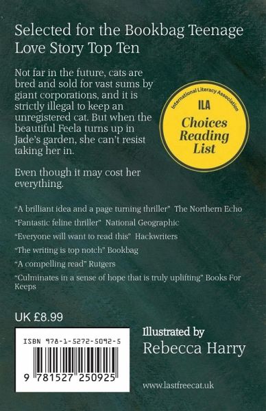 A new revised and illustrated edition of the acclaimed dystopian YA thriller set in a future world where cats are strictly controlled and marketed at huge prices. Written in Cardiff, Wales by the award-winning author of over sixty titles Jon Blake, the novel tells the story of Jade, a law-abiding teenage girl, who finds an unregistered and therefore illegal cat in her back garden, takes it in, and ends up on the run from the law with her feral friend Kris. Rutgers described the book as 'a compelling read' while School Librarian called it 'a very satisfying and brave book that does not go in for easy answers'. Originally published by Hodder in the UK and Albert Whitman in the US, the book was selected by the International Literacy Association for its Young Choices list, and by Bookbag for its top ten teen romances. The new edition also features beautiful artwork by Cardiff illustrator Rebecca Harry.