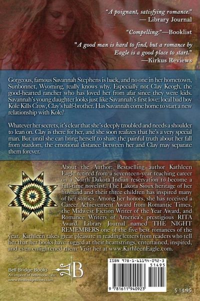 Gorgeous, famous Savannah Stephens is back, and no one in her hometown, Sunbonnet, Wyoming, really knows why. Especially not Clay Keogh, the good-hearted rancher who has loved her from afar since they were kids. Savannah's young daughter looks just like Savannah's first love: local bad boy Kole Kills Crow, Clay's half-brother. Has Savannah come home to start a new relationship with Kole? Whatever her secrets, it's clear that she's deeply troubled and needs a shoulder to lean on. Clay is there for her, and she soon realizes that he's a very special man. But until she can bring herself to share the painful truth about her fall from stardom, the emotional distance between her and Clay may separate them forever. Bestselling author Kathleen Eagle retired from a seventeen-year teaching career on a North Dakota Indian reservation to become a full-time novelist. The Lakota Sioux heritage of her husband and their three children has inspired many of her stories. Among her honors, she has received a Career Achievement Award from Romantic Times, the Midwest Fiction Writer of the Year Award, and Romance Writers of America's prestigious RITA Award. Kathleen takes great pleasure in reading letters from readers who tell her that her books have tugged at their heartstrings, entertained, inspired, and even enlightened them.