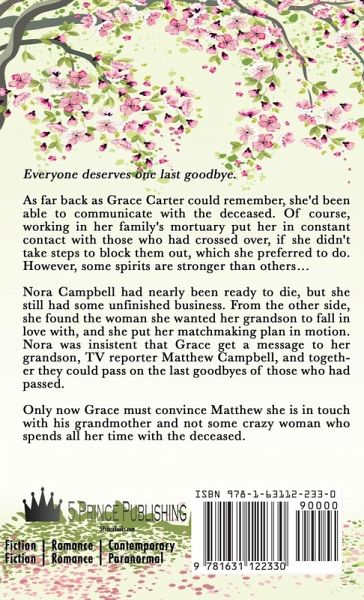 Everyone deserves one last goodbye.¿ As far back as Grace Carter could remember, she'd been able to communicate with the deceased. Of course, working in her family's mortuary put her in constant contact with those who had crossed over, if she didn't take steps to block them out, which she preferred to do. However, some spirits are stronger than others… Nora Campbell had nearly been ready to die, but she still had some unfinished business. From the other side, she found the woman she wanted her grandson to fall in love with, and she put her matchmaking plan in motion. Nora was insistent that Grace get a message to her grandson, TV reporter Matthew Campbell, and together they could pass on the last goodbyes of those who had passed. ¿ Only now Grace must convince Matthew she is in touch with his grandmother and not some crazy woman who spends all her time with the deceased.