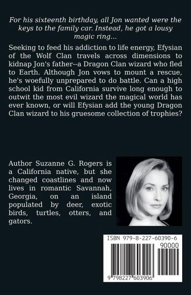 For his sixteenth birthday, all Jon wanted were the keys to the family car. Instead, he got a lousy magic ring... Seeking to feed his addiction to life energy, Efysian of the Wolf Clan travels across dimensions to kidnap Jon's father--a Dragon Clan wizard who fled to Earth. Although Jon vows to mount a rescue, he's woefully unprepared to do battle. Can a high school kid from California survive long enough to outwit the most evil wizard the magical world has ever known, or will Efysian add the young Dragon Clan wizard to his gruesome collection of trophies?
