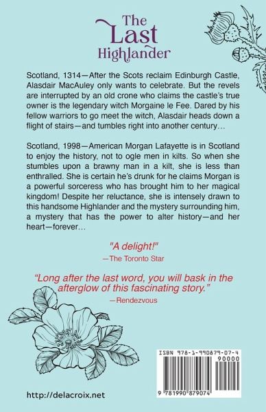 Scotland, 1314-After the Scots reclaim Edinburgh Castle, Alasdair MacAuley only wants to celebrate. But the revels are interrupted by an old crone who claims the castle's true owner is the legendary witch Morgaine le Fee. Dared by his fellow warriors to go meet the witch, Alasdair heads down a flight of stairs-and tumbles right into another century... Scotland, 1998-American Morgan Lafayette is in Scotland to enjoy the history, not to ogle men in kilts. So when she stumbles upon a brawny man in a kilt, she is less than enthralled. She is certain he's drunk for he claims Morgan is a powerful sorceress who has brought him to her magical kingdom! Despite her reluctance, she is intensely drawn to this handsome Highlander and the mystery surrounding him, a mystery that has the power to alter history-and her heart-forever... "The Last Highlander is a tremendous time travel tale that stars two wondrous lead protagonists. The brisk story line will grab onto readers from page one and not let go until the story is complete."-Affaire de Coeur "A delight!"-The Toronto Star