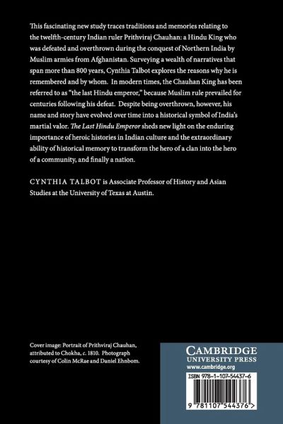 This fascinating new study traces traditions and memories relating to the twelfth-century Indian ruler Prithviraj Chauhan; a Hindu king who was defeated and overthrown during the conquest of Northern India by Muslim armies from Afghanistan. Surveying a wealth of narratives that span more than 800 years, Cynthia Talbot explores the reasons why he is remembered, and by whom. In modern times, the Chauhan king has been referred to as 'the last Hindu emperor', because Muslim rule prevailed for centuries following his defeat. Despite being overthrown, however, his name and story have evolved over time into a historical symbol of India's martial valor. The Last Hindu Emperor sheds new light on the enduring importance of heroic histories in Indian culture and the extraordinary ability of historical memory to transform the hero of a clan into the hero of a community, and finally a nation.