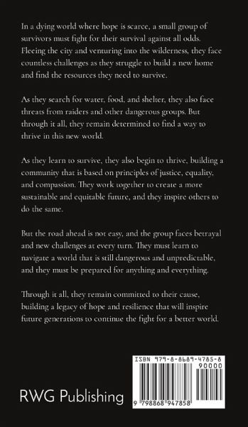 In a dying world where hope is scarce, a small group of survivors must fight for their survival against all odds. Fleeing the city and venturing into the wilderness, they face countless challenges as they struggle to build a new home and find the resources they need to survive. As they search for water, food, and shelter, they also face threats from raiders and other dangerous groups. But through it all, they remain determined to find a way to thrive in this new world. As they learn to survive, they also begin to thrive, building a community that is based on principles of justice, equality, and compassion. They work together to create a more sustainable and equitable future, and they inspire others to do the same. But the road ahead is not easy, and the group faces betrayal and new challenges at every turn. They must learn to navigate a world that is still dangerous and unpredictable, and they must be prepared for anything and everything. Through it all, they remain committed to their cause, building a legacy of hope and resilience that will inspire future generations to continue the fight for a better world. "The Last Hope" is a gripping and inspiring tale of survival and hope in a world that is on the brink of collapse. It is a story of determination and resilience, of the power of community and mutual support, and of the strength of the human spirit in the face of incredible adversity.