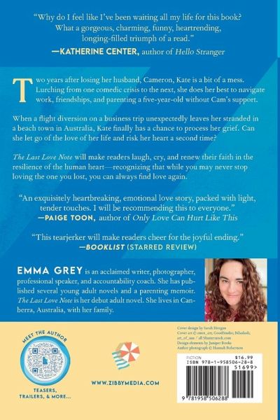 A December 2023 Indie Next Pick A December 2023 Book of the Month Selection and Book of the Year Nominee A Washington Post Noteworthy Book A National Bestseller You may never stop loving the one you lost. But you can still find love again. Two years after losing her husband, Cameron, Kate is a bit of a mess. Lurching from one comedic crisis to the next, she does her best to navigate work, friendships, and parenting a five-year-old without Cam’s support. When a flight diversion on a business trip unexpectedly leaves her stranded in a beach town in Australia, Kate finally has a chance to process her grief. Can she let go of the love of her life and risk her heart a second time? The Last Love Note will make readers laugh, cry, and renew their faith in the resilience of the human heart—recognizing that while you may never stop loving the one you lost, you can always find love again.