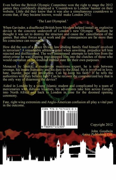 Even before the British Olympic Committee won the right to stage the 2012 games, they confidently displayed a 'Countdown to London' banner on their website. Little did they know that it was also a simultaneous countdown to events that could make London 2012: 'The Last Olympiad.' Taken from a terrorist's point of view this thriller examines the potential to bring destruction to the London 2012 Olympic venue and the sensibilities of a disaffected young Asian athlete who falls into the hands of those who would manipulate him into acts that are beyond his personal morality. He is involved in love, hate, murder, rape and retribution. Can he keep his faith? Fate, right wing extremists and Anglo-American confusion all play a vital part in the outcome.