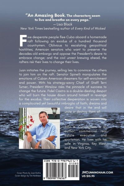 Five desperate people flee Cuba aboard a homemade raft following an exodus of a hundred thousand countrymen. Oblivious to escalating geopolitical hostilities; American senators who want to preserve the decades-old embargo and oppose the President's desire to embrace change; and the civil unrest brewing ahead, the rafters risk their lives to change their lives. Juan initiates the journey, selling lies to convince the others to join him on the raft. Senator Spinelli manipulates the emotions of Cuban American dreamers for self-enrichment and power. With his strategy-savvy Chief of Staff Terri Turner, President Winslow risks the pinnacle of success to change the future. Fidel Castro is a double-dealing despot who will burn the house down around himself in revenge for the exodus. Their collective desperation is woven into a complicated yet beautiful imbroglio of faith, dreams and desire that in the end will unite or destroy them all.