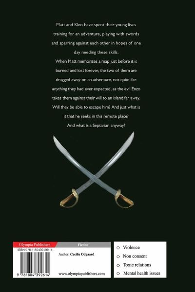 Matt and Kleo have spent their young lives training for an adventure, playing with swords and sparring against each other in hopes of one day needing these skills. When Matt memorizes a map just before it is burned and lost forever, the two of them are dragged away on an adventure, not quite like anything they had ever expected, as the evil Enzo takes them against their will to an island far away. Will they be able to escape him? And just what is it that he seeks in this remote place? And what is a Septarian anyway?