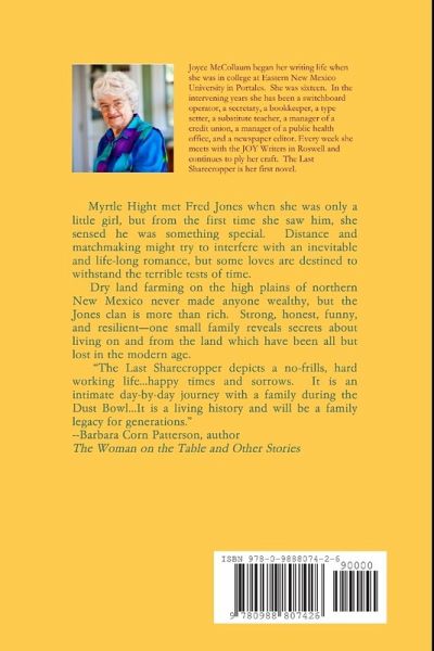 Myrtle Hight met Fred Jones when she was only a little girl, but from the first time she saw him, she sensed he was something special. Distance and matchmaking might try to interfere with an inevitable and life-long romance, but some loves are destined to withstand the terrible tests of time. Dry land farming on the high plains of northern New Mexico never made anyone wealthy, but the Jones clan is more than rich. Strong, honest, funny, and resilient-one small family reveals secrets about living on and from the land which have been all but lost in the modern age. "The Last Sharecropper depicts a no-frills, hard working life...happy times and sorrows. It is an intimate day-by-day journey with a family during the Dust Bowl...It is a living history and will be a family legacy for generations." --Barbara Corn Patterson, author The Woman on the Table and Other Stories